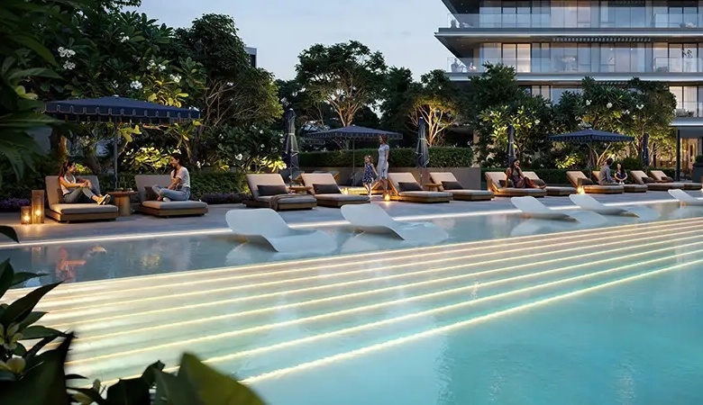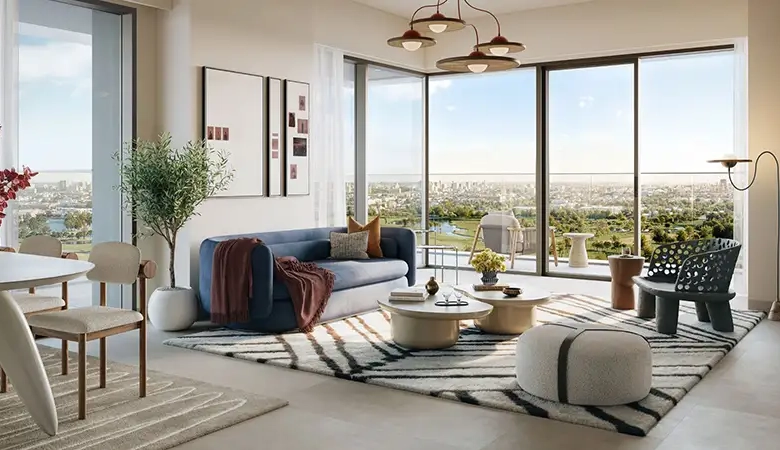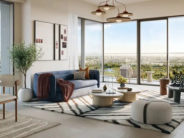Modern architecture elevates everyday living at ease through its careful design which raises its value through contact with the environment. The building communicates everlasting aesthetic appeal through its smooth design elements which combine natural earth tones with expansive glass walls. Quiet sophistication greets you immediately when you step into high-ceilinged lobbies and the design of the building expresses the dual qualities of urban innovation with nature-infused tranquillity that define Dubai Creek Harbour. Every exterior design at the building communicates with its environmental setting with purposeful intent to enhance your spatial awareness of the local nature scene which includes green parks, canal reflections and golf course landscapes.
