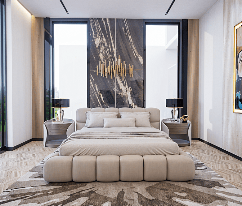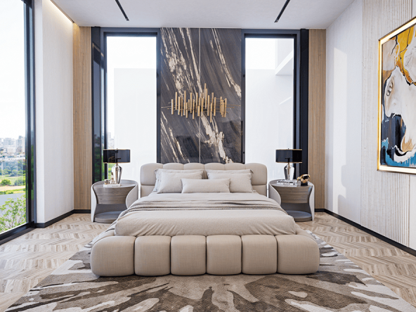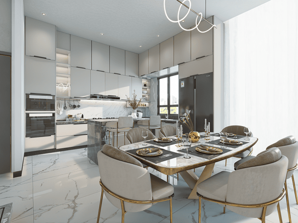 Modern designs and luxurious materials like porcelain tiled floors, Fenomastic emulsion wall paints, aluminum double glazed windows, granite counter tops. Smart Home Technology.