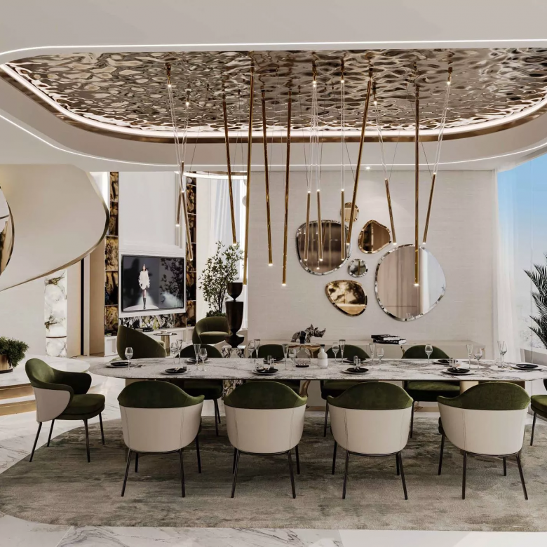 Canal Crown is a new premium residential addition by DAMAC Properties in the thriving area of Business Bay. Designed in collaboration with de GRISOGONO, the 2-tower complex of 38 storeys will be inspired by peridot, with elements of outer space. From floors 2 till 35, Canal Crown will house ‘luxury’ units, whilst the 36th and 37th floors will have ‘super-luxury’ properties.