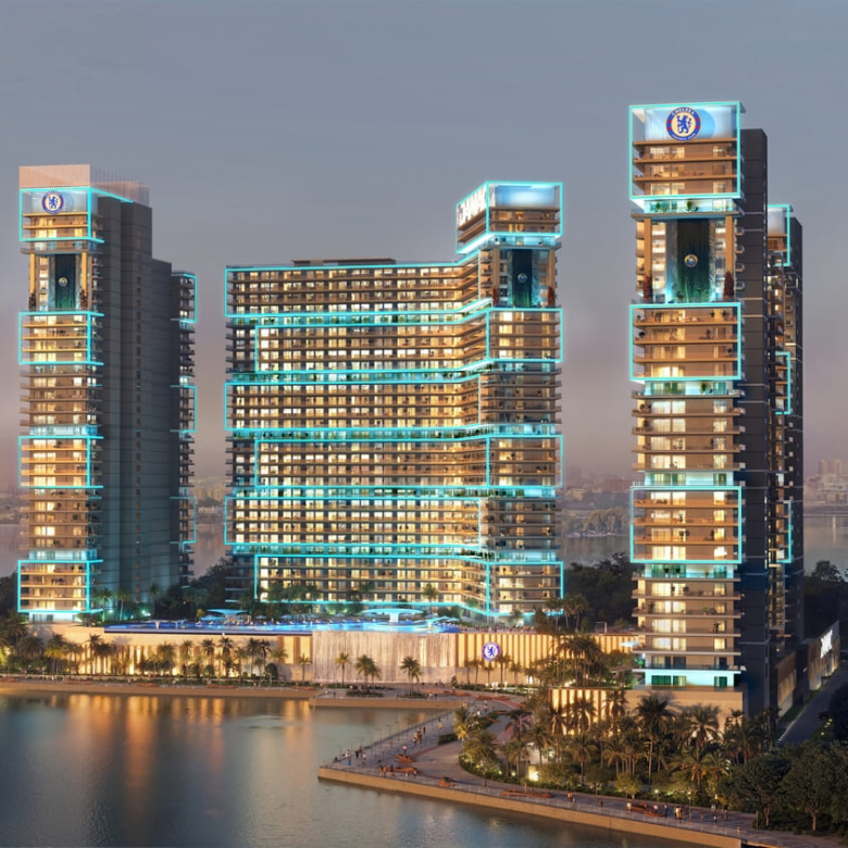 Each apartment features generous layouts, double-glazed windows, fully equipped kitchens, built-in wardrobes, and refined finishes that enhance everyday comfort. The towers offer a wealth of thoughtfully crafted wellness and leisure amenities, including infinity pools, aerial yoga rooms, kids’ underwater-themed play areas, a jogging track, Chelsea Football Simulation Room, outdoor gyms, and the Chelsea Blue Beach Club. The wellness experience is further elevated by rain therapy, cryotherapy, water treatment tunnels, and forest relaxation pods.