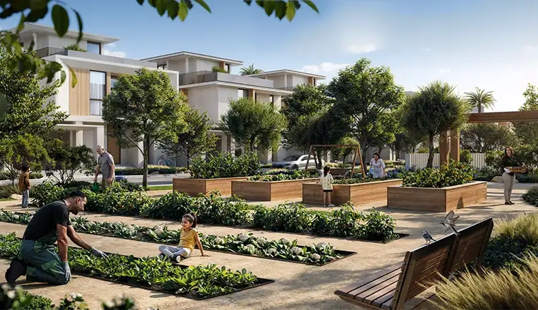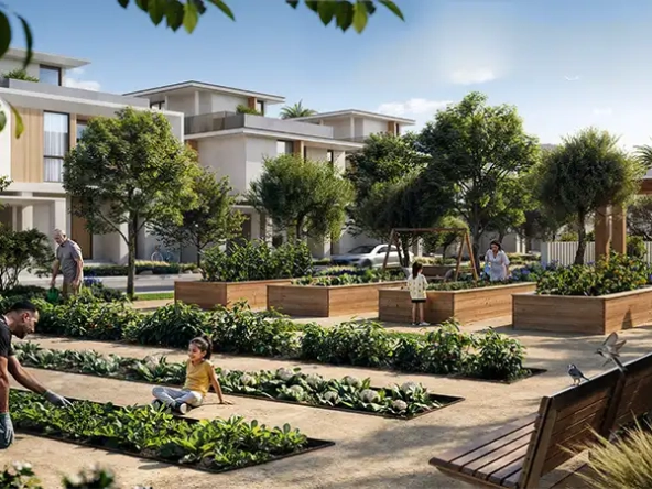 Part of the most celebrated Valley community by Emaar Properties, Farm Grove at The Valley showcases an outstanding collection of 4 and 5-bedroom villas in Dubai. Nestled within the enchanting landscapes, the facade invites you to a lifestyle where modernity seamlessly intertwines with nature. Spread across verdant greenery and dotted with the iconic Ghaf trees, the community provides a haven for residents seeking peace and purpose. This isn’t just a home; it’s a self-sustaining ecosystem where sustainable living meets modern comforts.