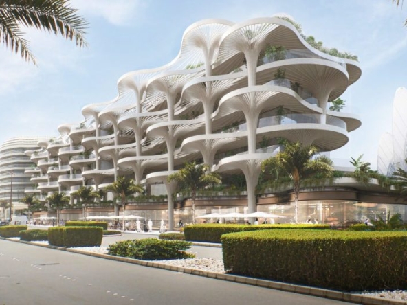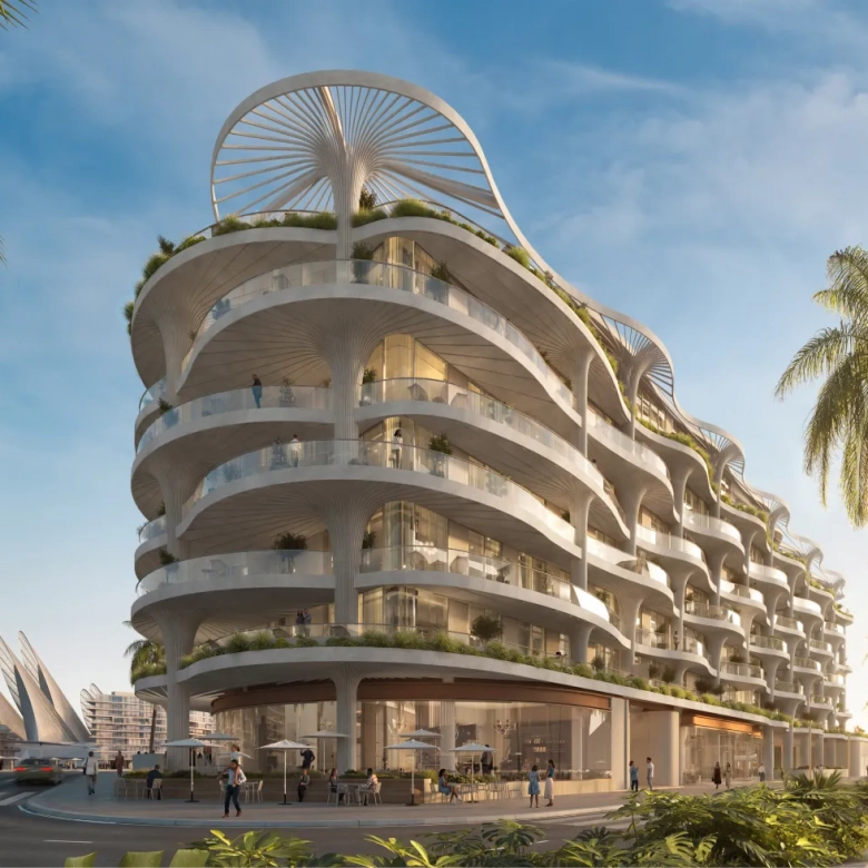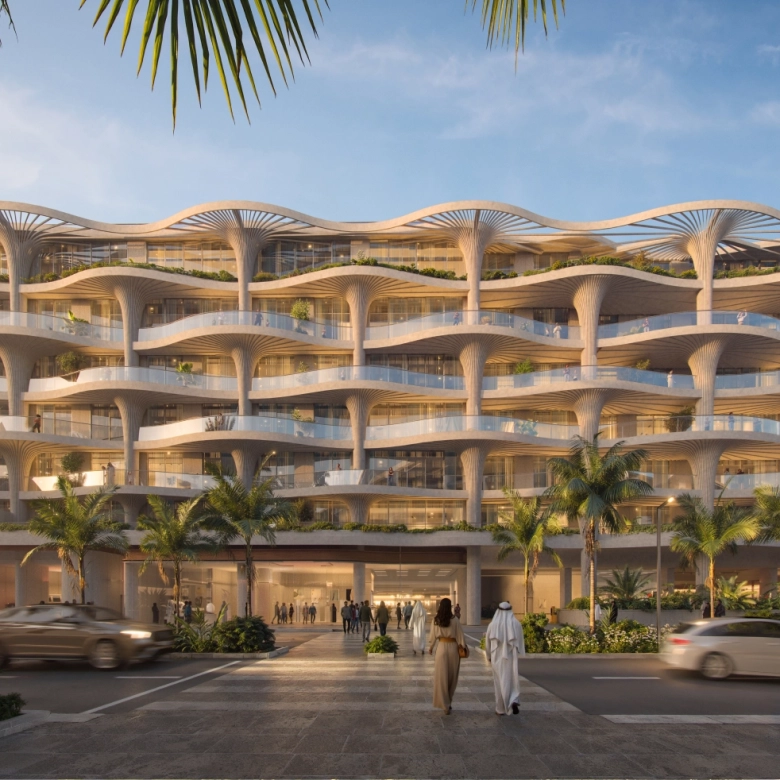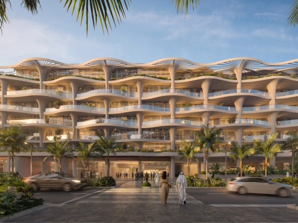 Mamsha Palm at Saadiyat Island is an architectural marvel where nature and luxury converge with exclusive apartments and sky villas, crafted meticulously by Aldar Properties. Drawing inspiration from the organic beauty of the palm tree, this exclusive façade is designed by world-famous architect Koichi Takada, where the design incorporates fluid rooflines, tree-like columns, and Biophilic elements that mirror the island’s lush landscape. Every inch of this exclusive development, from its low-rise form to its expansive, light-filled interiors, exudes sophistication. Takada’s vision for this project creates a seamless blend of modern aesthetics with nature’s tranquillity, offering residents a unique sanctuary that feels both timeless and harmoniously integrated within its surrounding.