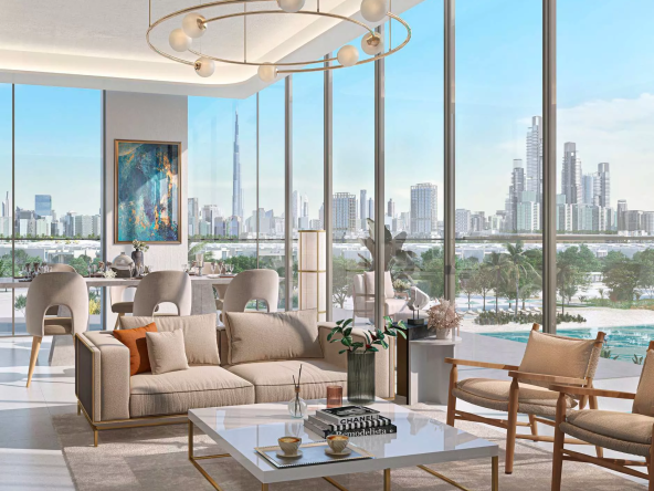 The high-end residences will offer the finest views of the crystal lagoon and Dubai skyline. The interiors will be executed in neutral colours, allowing you to customise your home to your liking. To create a more comfortable living environment, the master developer will ensure the availability of built-in kitchen appliances from leading European brands.