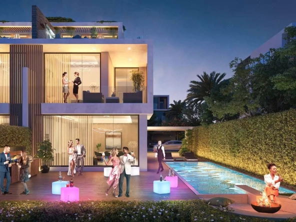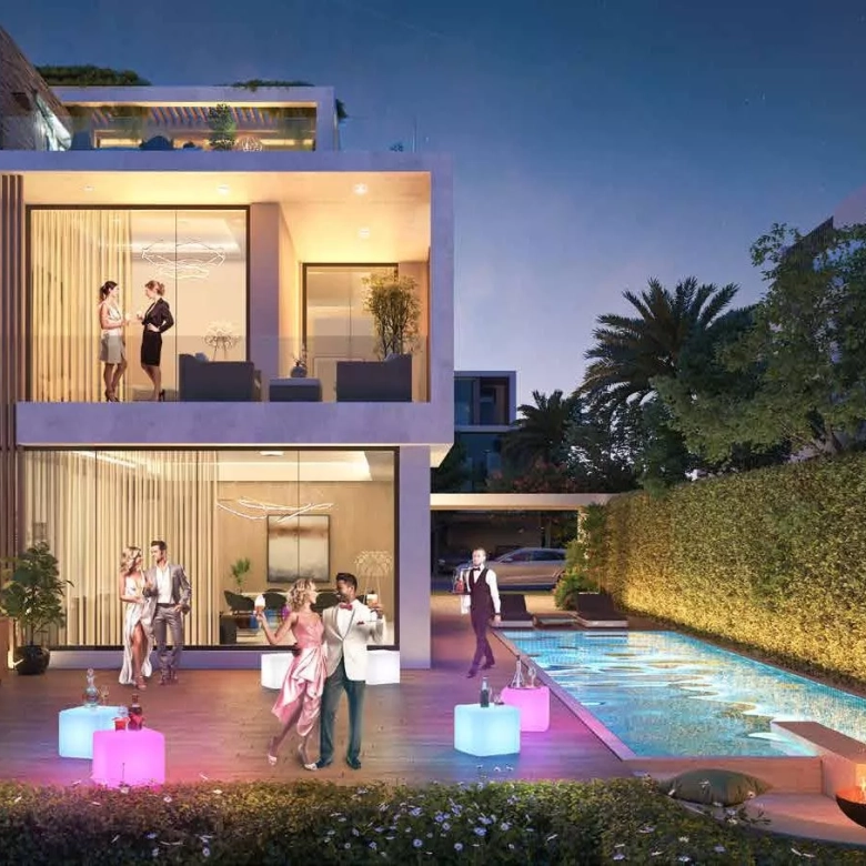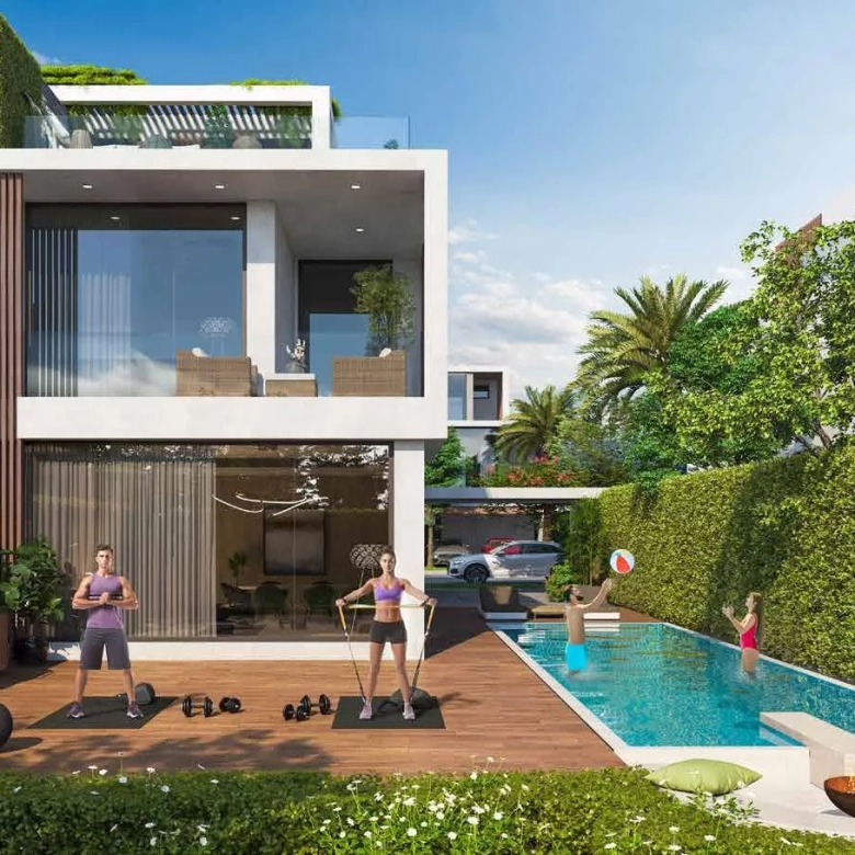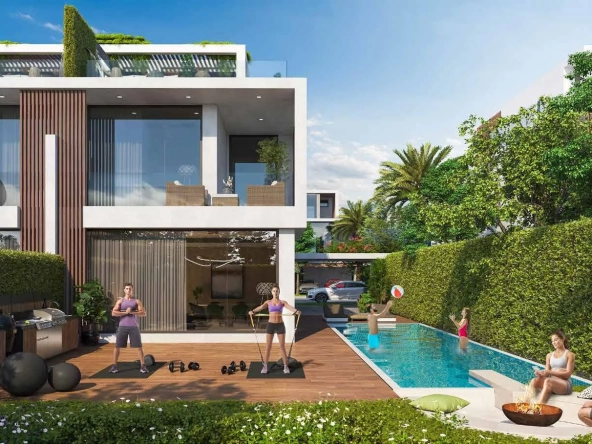 Each property has 3 floors. Among other key features are a garage, a private swimming pool, an outdoor gym/yoga platform, a laundry room, a storage room, a jacuzzi, a private cinema and a terrace. The size of the property is 3,542 sq. ft, whilst the plot area stands at 2,462 sq. ft.